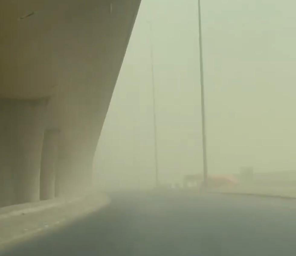 据《体坛周报》前方记者马德兴通过社交媒体发布现场视频显示,当地空中能见度明显下降,风沙弥漫,道路周边被黄沙笼罩,天气条件较为恶劣。