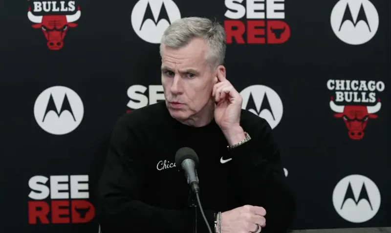 虎扑04月13日讯 今日NBA常规赛,达拉斯独行侠以149-128的比分击败芝加哥公牛。在赛后采访中,芝加哥公牛队主教练比利-多诺万总结了本赛季的挑战,指出球队在交易截止日后的阵容调整、核心球员伤病以及缺乏系统训练是导致表现不稳定的主因。多诺万表示,尽管成绩未达预期,但他对公牛球员展现的职业态度感到满意。